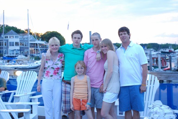 From the left, my mom, my brother, Brendin, my brother, Kyle, me, my dad, and then my little sister, Jillian, is in the front.